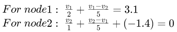 列式技巧:将当前计算的节点假设为较高电位,将流出的电流放在等式左侧,流入电流放在等式右侧。